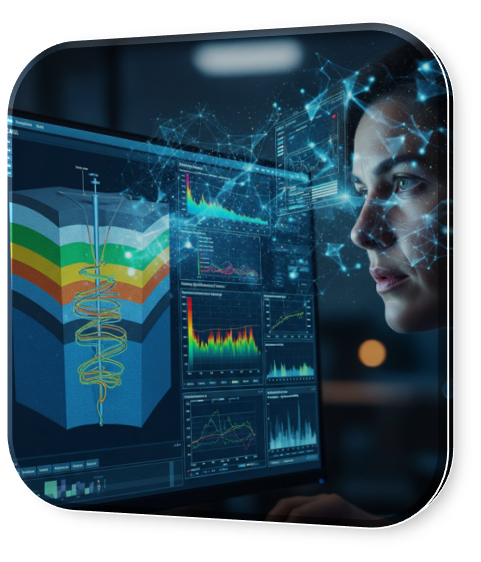 We use Artificial Intelligence (AI) and Machine Learning (ML) to unlock deeper insights from complex subsurface and operational data. Our services include automated well log interpretation, seismic pattern recognition, reservoir property prediction, and production forecasting using advanced data-driven models. AI-driven analytics help in identifying subtle trends, reducing interpretation time, and improving accuracy in exploration and development workflows. We also provide customized ML solutions for drilling optimization, anomaly detection, asset monitoring, and predictive maintenance, enabling operators to enhance efficiency, minimize risk, and lower operational costs. By combining domain expertise with cutting-edge technology, we deliver intelligent solutions that transform data into smarter energy decisions.